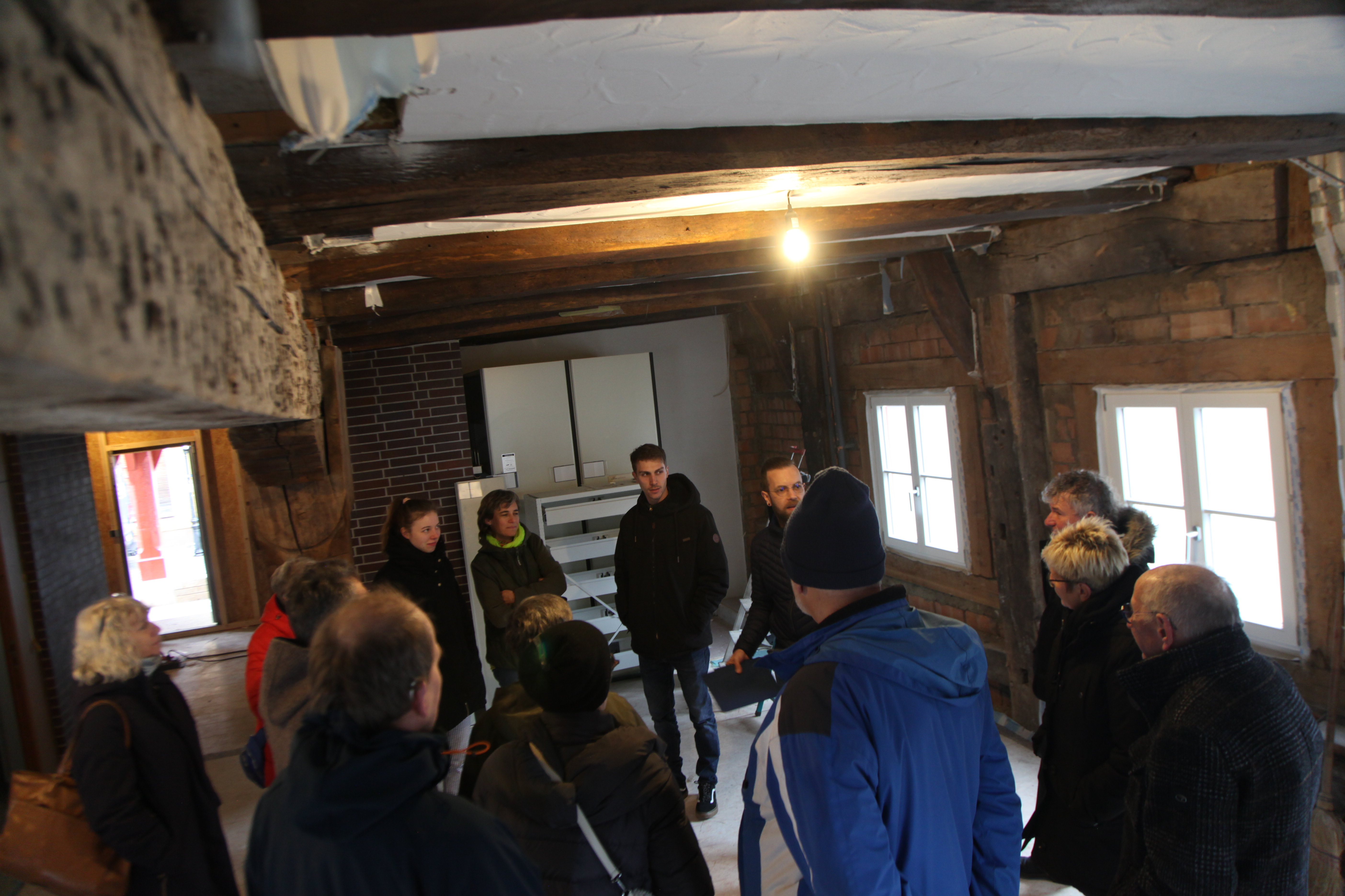 Im Rathaus selber erklärte uns Gottlieb Riedinger fachkundig die derzeit laufenden und geplanten umfangreichen Sanierungs- und Renovierungsarbeiten. Was nicht so bekannt ist: Das Fridinger Rathaus hatte sehr ähnlich ausgesehen. Der Fridinger Fachwerkbau wurde im 19. Jahrhundert abgerissen. Pläne und ein Modell vom Fridinger Rathaus existieren noch im Fridinger Heimatmuseum.