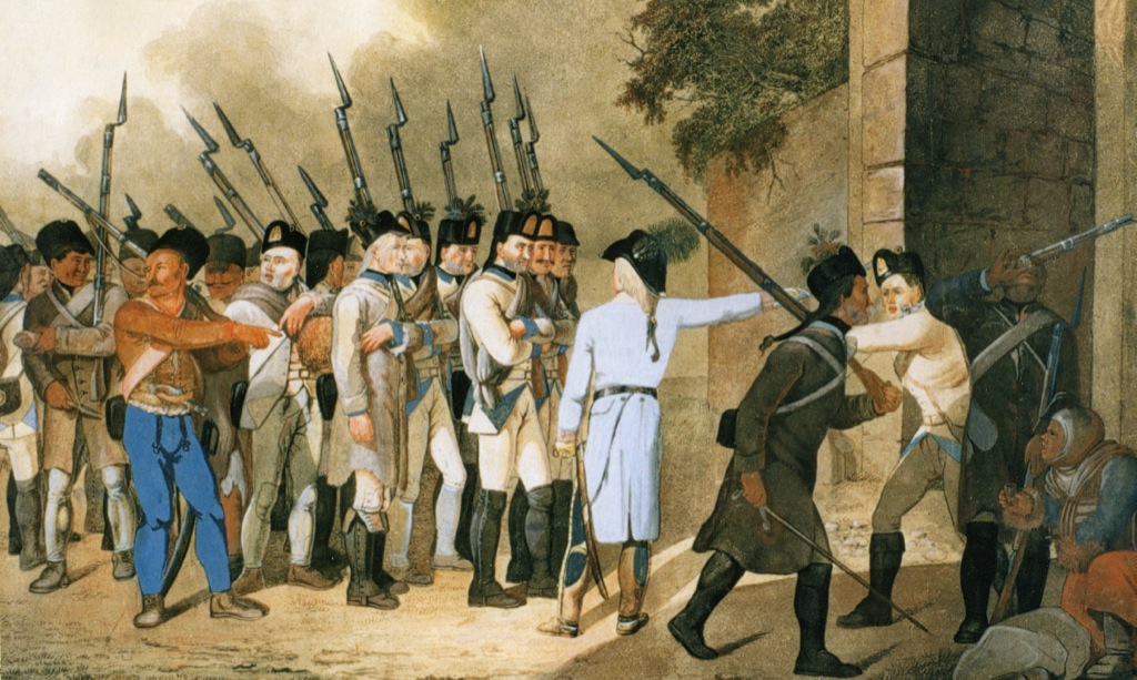 Am 1. März 1799 ging der Franzosengeneral Jourdan mit 38 000 Mann über den Rhein und überschwemmte noch vor Mitte März unsere Gegend mit seinen Truppen. In Fridingen lag eine Unmasse Soldaten. Juliane Spiegel, deren Mann die zurückziehenden Österreicher als Feldschlächter mitgenommen hatten, hatte 36 Mann im Quartier, in jedem Stock zwölf. Sie selbst bewohnte mit ihren Kindern ein enges Stübchen, das ihr bisher als Vorratskammer gedient hatte. In der Zeit dieser Einquartierung erlosch des Nachts nie ihre kleine, mit Rapsöl gefüllte Lampe. Legte sich Juliane zur Ruhe, so stülpte sie einen alten Milchtopf über das Licht. Gab es dann einmal Lärm, so war der Topf schnell weggenommen und das mühselige Feuermachen war erspart.