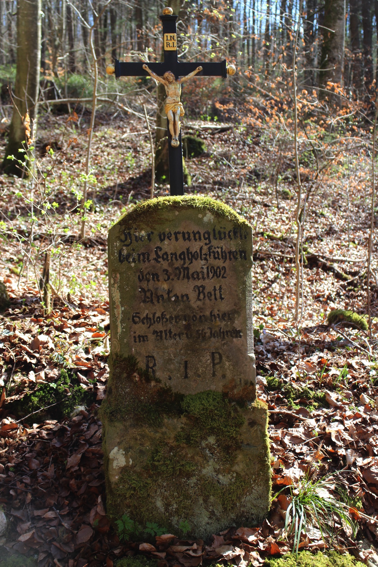 An dem uralten, tief eingeschnittenen Hohlweg am Unteren Hardt, der unterhalb des heutigen Weges vom Fridinger Hardt zur Bangelt liegt, steht ganz versteckt ein Gedenkkreuz. Es besteht aus einem oben abgerundeten Sockel aus Sandstein mit einem aufgesetzten Gusskreuz mit Korpus. Es wurde aufgestellt zum Gedenken an Anton Bett, im Volksmund Schlosser-Duni genannt, der an dieser Stelle bei einem tragischen Unfall am 3. Mai 1902 sein Leben verlor.