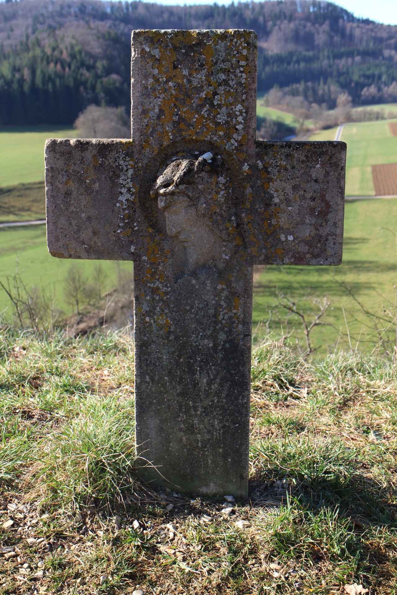 Auf dem Steiglefelsen befindet sich ebenfalls ein Teil eines ehemaligen Grabsteines vom Fridinger Friedhof, der von Steinhauer Franz Hipp stammt. Es handelt sich um das aufgesetzte Kreuz, das vom Grab des Philipp Hamma (1885-1946) stammt. Das Kreuz aus Betonwerkstein wurde um 1972 von Moritz Sattler, Josef Schiele und einigen weiteren Rentnern unter Mithilfe von Anton Kempf  hier aufgestellt. Einziger Schmuck des Kreuzes ist das reliefartig herausgearbeitete dornengekrönte Haupt Jesu. Zu dem Kreuz an dem interessanten Aussichtspunkt ins Donautal gesellte sich bald eine aus einem halben Baumstamm gefertigte Bank.