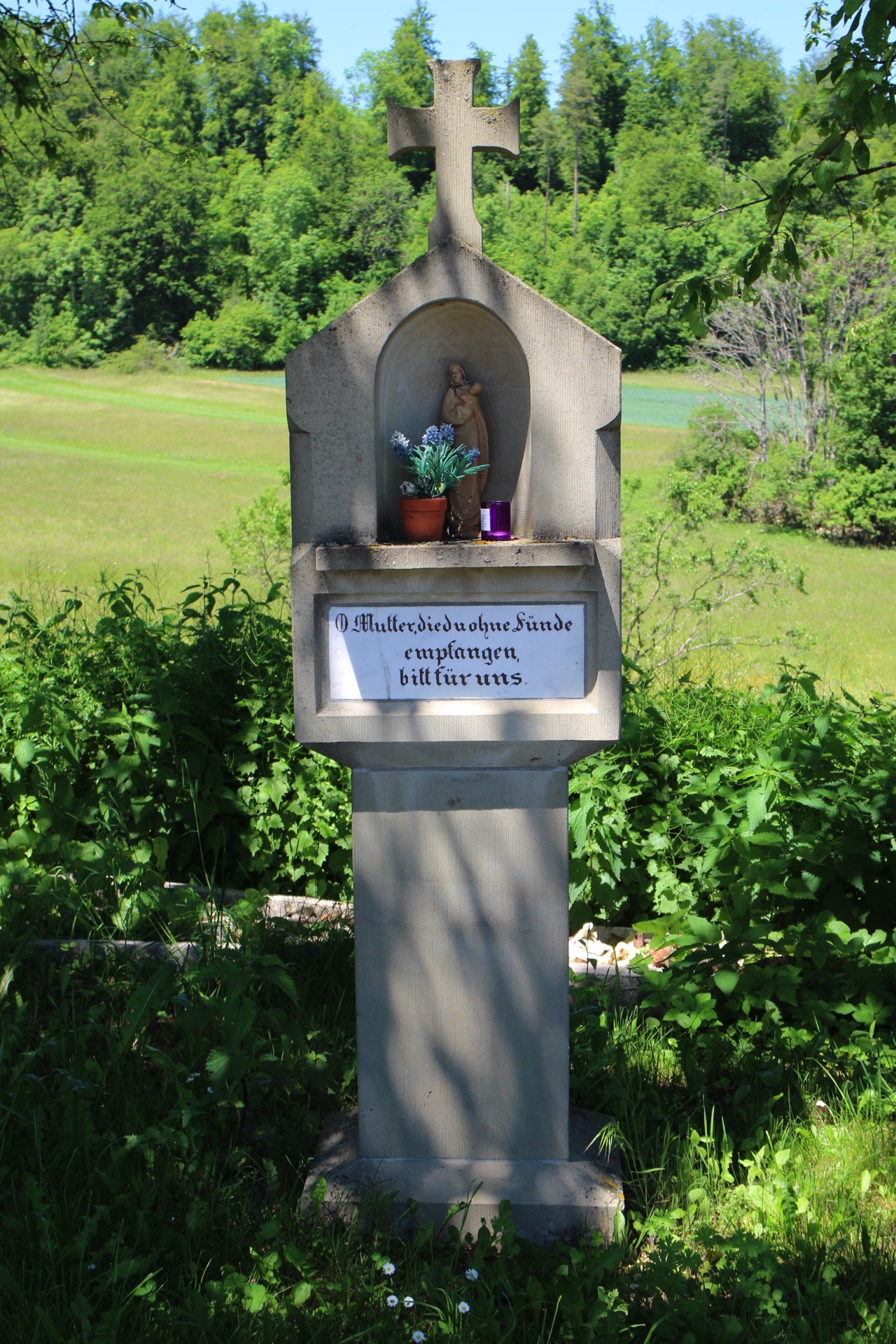 An der heutigen Straße-Maria-Hilf setzte Matthias Epple, der zeitlebens ein großer Marienverehrer war, einen Lourdesbildstock, der mit einem kleinen Steinkreuz gekrönt ist. In der Nische findet sich die Lourdes-Mutter-Gottes und davor die kniende hl. Bernadette. Die darunter angebrachte Inschrift lautet: